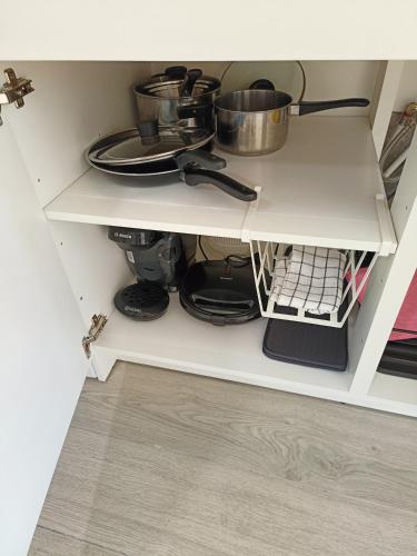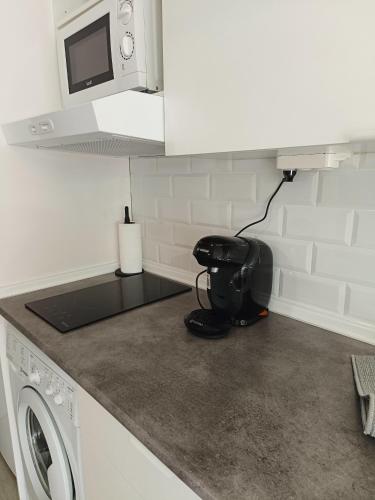 这家空调公寓配有1间卧室、起居室、带冰箱和咖啡机的设施齐全的厨房以及1间带淋浴设施和吹风机的浴室。这家公寓也为客人提供休息区和1间浴室。