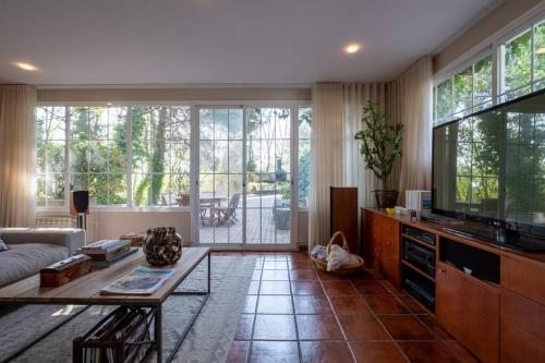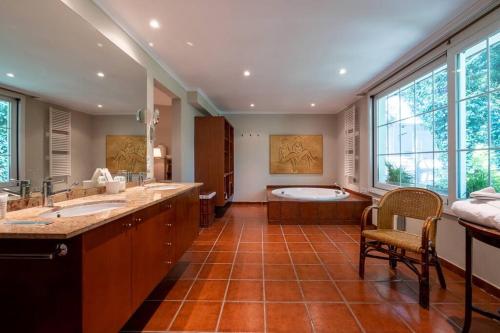 这家别墅配有3间卧室、4间浴室、床上用品、毛巾、平板电视、用餐区、设施齐全的厨房以及市景露台。这家空调别墅还配备休息区以及4间带坐浴盆、淋浴设施和热水浴池的浴室。