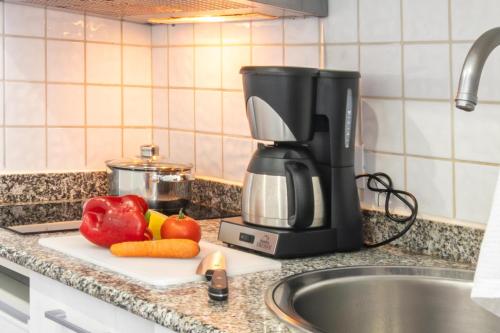 这家空调公寓配有1间卧室、起居室、带冰箱和咖啡机的设施齐全的小厨房以及1间带淋浴设施和吹风机的浴室。这家公寓也拥有休息区和1间浴室。