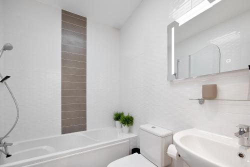 这家空调度假屋配有2间卧室、起居室、带冰箱和咖啡机的设施齐全的厨房以及2间带淋浴设施和免费洗浴用品的浴室。2间浴室配有浴缸,也拥有吹风机,提供毛巾和床上用品。