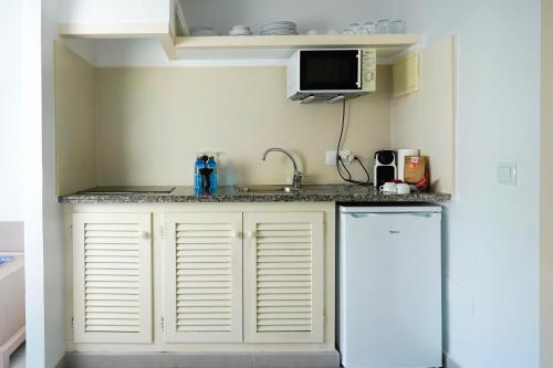 Each studio has 2 single beds and a sofa bed. There is a kitchenette with a fridge and a private bathroom with a hairdryer and shower.