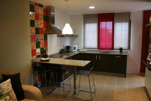 El Regueirin 2 apartments feature modern décor in warm colours. They have a living room with a flat-screen TV, sofas and an open-plan kitchen with microwave and fridge.