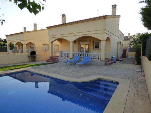 这家度假屋享有池景,为客人提供露台、休息区、卫星频道平板电视、带冰箱和洗碗机的设施齐全的厨房以及带淋浴设施和吹风机的私人浴室。住宿还提供烤箱、微波炉、炉灶和咖啡机。