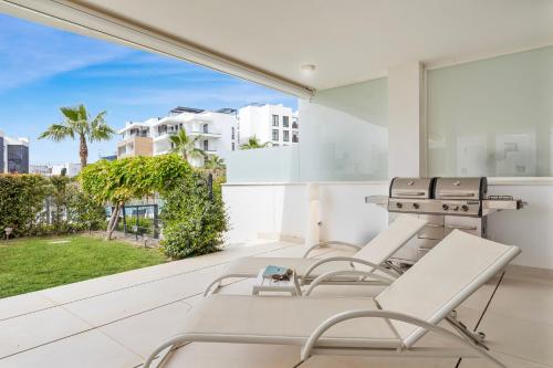 White modern retreat in Fuengirola - Ref 48位于托雷米勒,配备带免费WiFi的市景客房,配有季节性室外泳池、花园和露台。内部提供私人停车位。