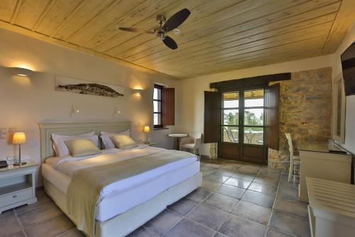 Castello Antico Hotel rooms include wood and stone features following the architectural style of Mani. Each room has a satellite TV, air conditioning and free Wi-Fi access. Their furnished balconies overlook the sea and the surrounding olive groves.