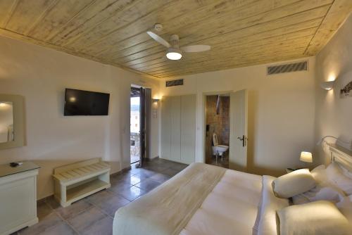 Castello Antico Hotel rooms include wood and stone features following the architectural style of Mani. Each room has a satellite TV, air conditioning and free Wi-Fi access. Their furnished balconies overlook the sea and the surrounding olive groves.
