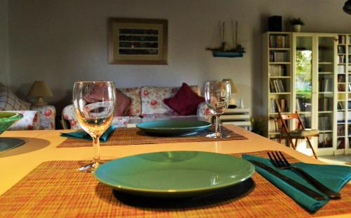 这家空调度假屋配有2间卧室、起居室、带冰箱和咖啡机的设施齐全的厨房以及2间带淋浴设施和免费洗浴用品的浴室。2间浴室配有浴缸,也提供吹风机,提供毛巾和床上用品。
