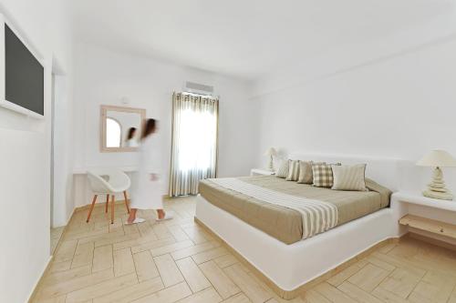 Evgenia酒店的所有客房、套房和别墅均拥有高雅的装饰,通向阳台,设有内置床、白色粉刷墙、拱门、空调、保险箱、平板电视、冰箱以及带免费洗浴用品和吹风机的浴室。