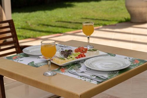 公寓式酒店在用餐区供应带自制果酱和新鲜水果的自助早餐。酒吧供应饮品和咖啡。