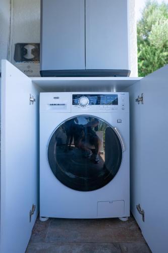 这家空调度假屋配有1间卧室、起居室、带冰箱和咖啡机的设施齐全的厨房以及1间带淋浴设施和免费洗浴用品的浴室。这家度假屋还配备休息区、洗衣机以及1间带吹风机的浴室。