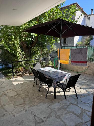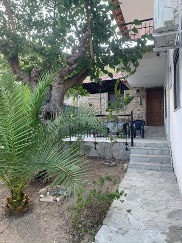 Stone house under a rock Kukos位于锡基亚,提供露台。这家自助式公寓配有花园和免费私人停车位。