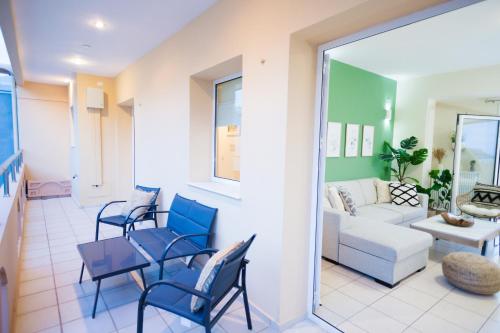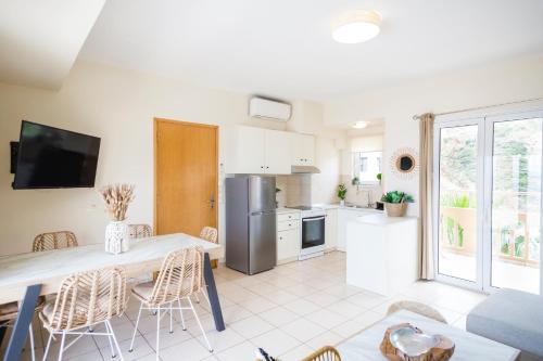THEA - Rooftop Seaview jacuzzi享有市景,提供露台和阳台,距离库姆贝斯海滩(Koumbes Beach)约有几步路。这家公寓享有海景和花园景,也配有免费WiFi。