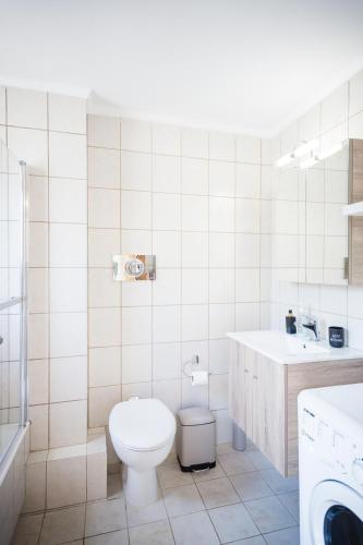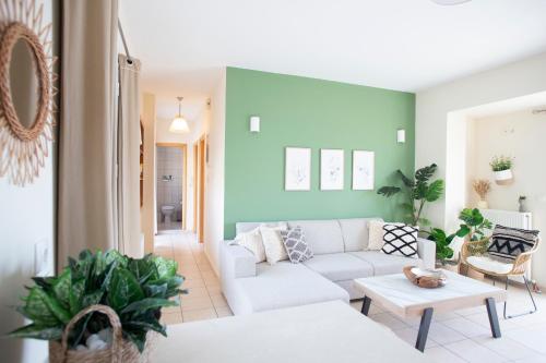 这家空调公寓配有2间卧室、起居室、带冰箱和咖啡机的设施齐全的厨房以及1间带热水浴池和免费洗浴用品的浴室。1间浴室配有浴缸,也提供吹风机,提供毛巾和床上用品。