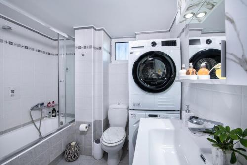 这家公寓配备2间卧室、1间浴室、床上用品、毛巾、带有线频道的平板电视、用餐区、设施齐全的厨房以及市景阳台。这家空调公寓还提供休息区、洗衣机以及1间带淋浴设施和浴缸的浴室。