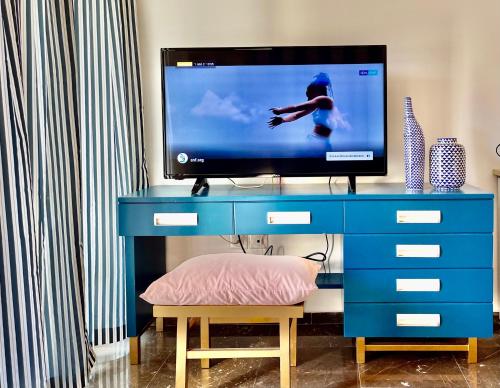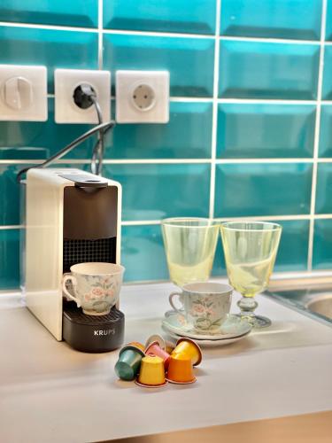这家空调公寓配有1间卧室、起居室、带冰箱和咖啡机的设施齐全的厨房以及1间带淋浴设施和免费洗浴用品的浴室。这家公寓还提供休息区、洗衣机以及1间带吹风机的浴室。
