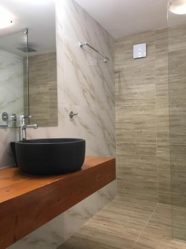 这家空调公寓配有1间卧室、起居室、带冰箱和咖啡机的设施齐全的厨房以及1间带淋浴设施和吹风机的浴室。这家公寓也配备休息区和1间浴室。