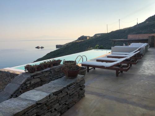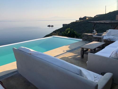 The Charming Waterfront Retreat, with a swimming pool & direct access to the sea, ideal for large families, or a group of friends享有花园景,提供庭院和咖啡机,距离奥齐亚斯海滩(Otzias Beach)约有不到一公里。这家住宿的客人可以使用阳台、免费私人停车位和免费WiFi。