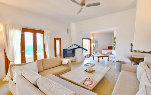 这家别墅提供露台,享有海景,配有5间卧室、起居室、平板电视、带冰箱和洗碗机的设施齐全的厨房以及6间带淋浴设施的浴室。6间浴室配有浴缸,也为客人提供吹风机,提供毛巾和床上用品。