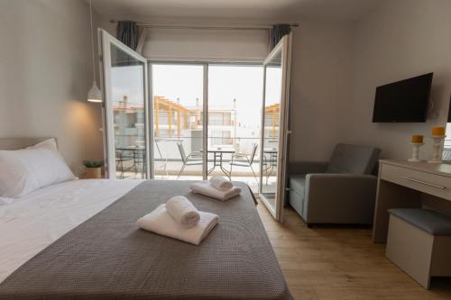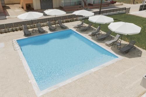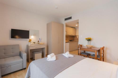Porto Dionysos提供免费自行车、季节性室外泳池以及带阳台和免费WiFi的空调住宿,距离奥弗里尼奥海滩(Ofrinio Beach)有4分钟步行路程。内部提供私人停车位。