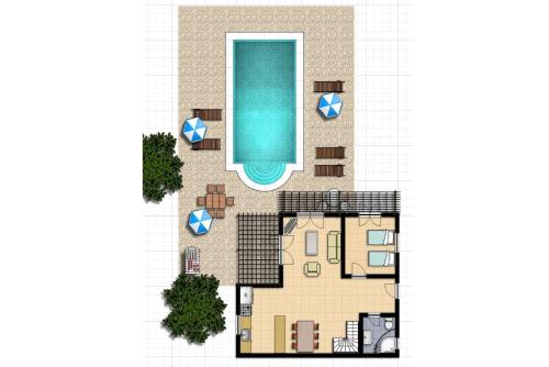 住宿内部配备室外泳池。客人可以在这家别墅附近体验骑行。