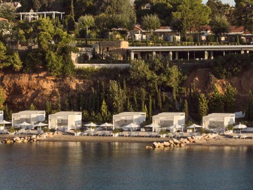 Located in Sithonia, Halkidiki, the Resort occupies one of the finest sandy beaches in Greece and resides within thriving Mediterranean gardens: A majestic gate opens to verdant pine trees colonnading the 40.000 SQM aerial of blooming nature and to a pristine 315m private Beach equipped with private Beach Cabanas.