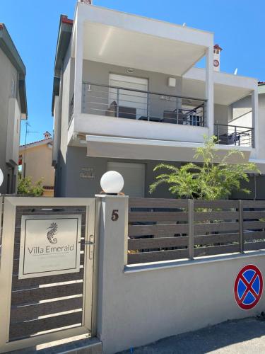 Villa Emerald Luxury Living提供花园、烧烤设施以及带阳台和免费WiFi的空调住宿,距离尼基蒂海滩(Nikiti Beach)有4分钟步行路程。