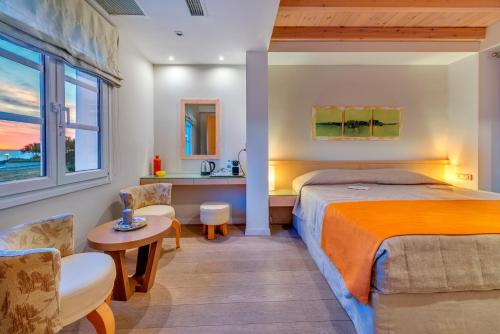 Nissaki Beach酒店的客房和套房拥有浅色调的缤纷装饰,可通往1个室外阳台;部分客房和套房享有爱琴海(Aegean Sea)的美景。所有客房和套房均配有液晶卫星电视、DVD播放机、迷你吧以及带水力按摩淋浴间和免费洗浴用品的浴室。