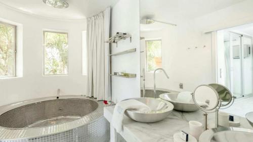 这家空调别墅配有6间卧室、起居室、带冰箱和咖啡机的设施齐全的厨房以及6间带坐浴盆和淋浴设施的浴室。6间浴室配有浴缸,也配备免费洗浴用品,提供毛巾和床上用品。