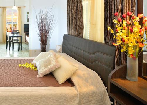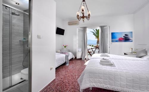 基克拉迪风格的Hotel Nazos 1酒店位于米克诺斯镇(Mykonos Town)北150米的小山丘上,提供可欣赏爱琴海(Aegean Sea)美景和城镇全景的露台。酒店配有酒吧。客房拥有传统的装饰,并提供免费WiFi。