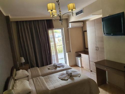 Delfini Hotel坐落于Menídion,距离梅尼迪海滩有2分钟步行路程,配备花园、免费私人停车位、共用休息室和露台。这家住宿提供的设施包括餐厅、客房服务、24小时前台以及免费WiFi。客人可以在酒吧享用饮品。
