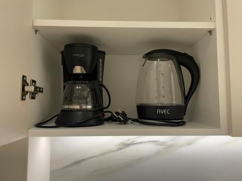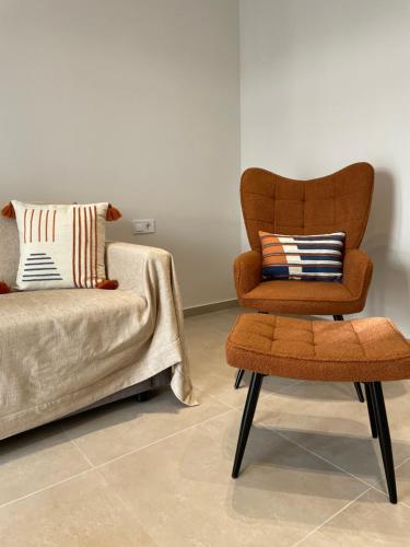 这家空调公寓配有1间卧室、起居室、带冰箱和咖啡机的设施齐全的厨房以及1间带淋浴设施和吹风机的浴室。这家公寓也配备休息区和1间浴室。