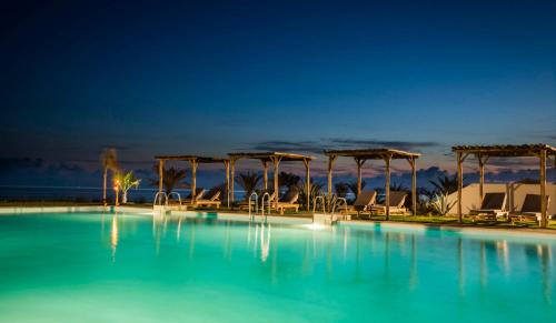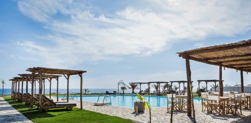 Opening to spacious, furnished terraces, the villas have a living room and a fully-equipped kitchen. Each includes a Smart TV with satellite channels, and branded toiletries.