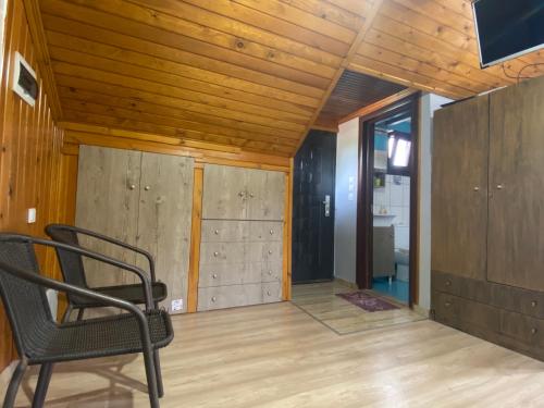 这家度假屋配有1间卧室、1间浴室、床上用品、毛巾、平板电视、设施齐全的小厨房以及花园景阳台。1间浴室提供淋浴设施和吹风机。