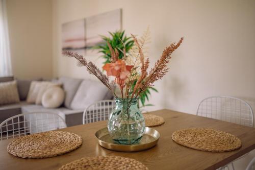 这家空调别墅配有2间卧室、起居室、带冰箱和咖啡机的设施齐全的厨房以及1间带淋浴设施和吹风机的浴室。这家别墅也拥有休息区和1间浴室。