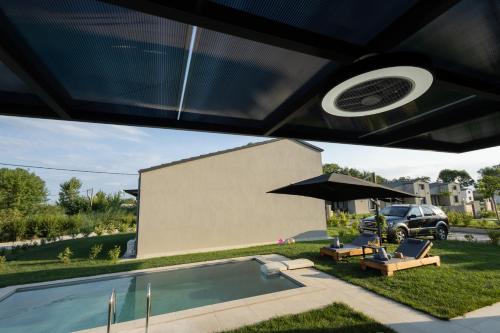 这家别墅享有池景,为客人提供庭院、休息区、平板电视、带冰箱和炉灶的设施齐全的厨房以及带淋浴设施和免费洗浴用品的私人浴室。
