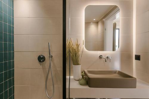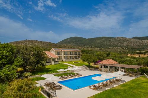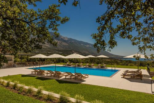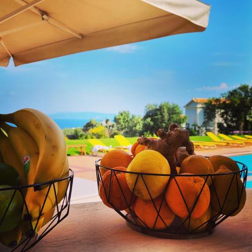 Our guests can relax around the large swimming pool with an adjacent snack bar or enjoy the fresh breeze in our lush garden under iconic old olive trees.
