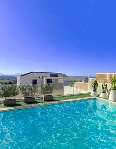 LUMIERE VILLAS提供免费自行车、户外游泳池以及带庭院和免费WiFi的空调住宿,距离莫诺利提海滩(Monolithi Beach)有2公里。内部提供私人停车位。