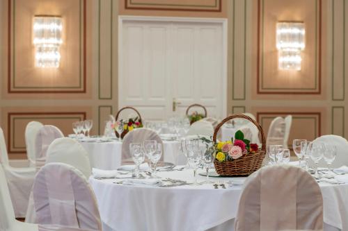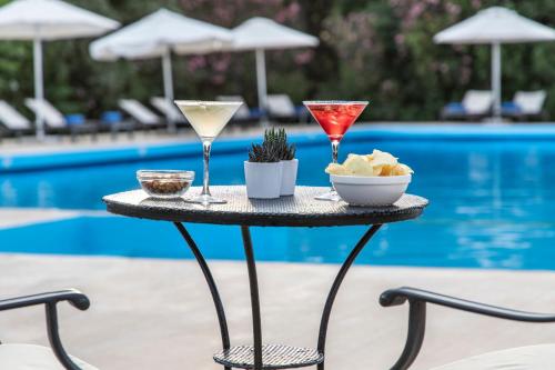 客人每天可以在酒店的用餐区或客房内享用丰盛的早餐。酒店内的餐厅在优雅的环境中供应包含希腊和国际风味美食的晚餐,壁炉旁全天供应咖啡和饮品。