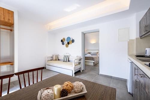 The rooms are decorated according to the traditional Cycladic style. They are equipped with TV and refrigerator and they all have a private bathroom.