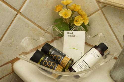 所有空调客房均设有横梁天花板、铁床、卫星电视、迷你冰箱和水壶,以及带免费洗浴用品、吹风机和大理石装置的浴室;部分客房还享有海景并提供水力按摩淋浴。