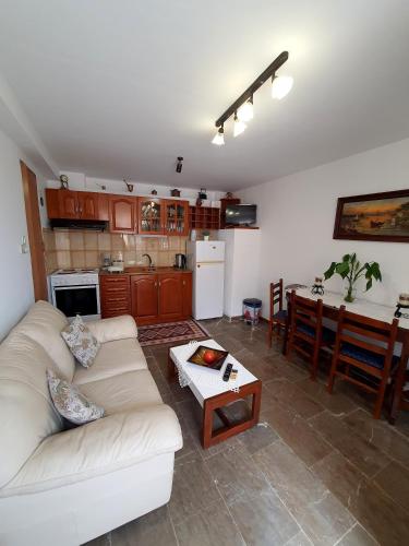 这家空调公寓配有1间卧室、起居室、带冰箱和咖啡机的设施齐全的厨房以及1间带淋浴设施和吹风机的浴室。这家公寓还配备休息区、洗衣机以及1间带浴袍的浴室。