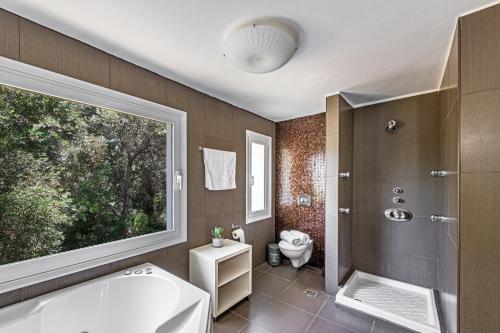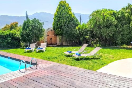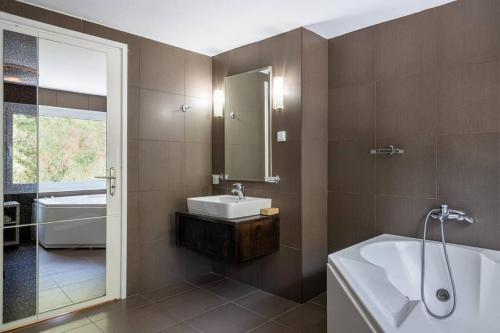 这家别墅享有山景,配备露台,配有5间卧室、起居室、卫星频道平板电视、设施齐全的厨房以及3间带淋浴设施和热水浴池的浴室。这家空调别墅还配备休息区、洗衣机以及3间带吹风机的浴室。