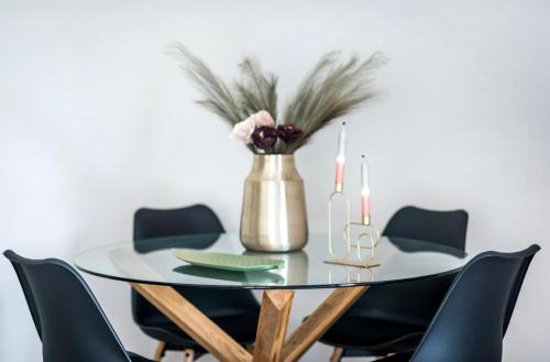 这家公寓提供2间卧室、1间浴室、床上用品、毛巾、平板电视、用餐区、设施齐全的厨房以及市景阳台。这家空调公寓还配备休息区、洗衣机以及1间带淋浴设施的浴室。
