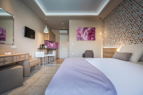 All units in Mavrias include a satellite TV and a kitchenette with cooking facilities, electric kettle, coffee maker and fridge.