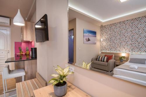 Shops, bars and restaurants are within 100 metres. Zakynthos Town is 5 km away and Zante Airport is at 8 km. Transfer to and from the airport can be provided on request, while free private parking is possible on site.