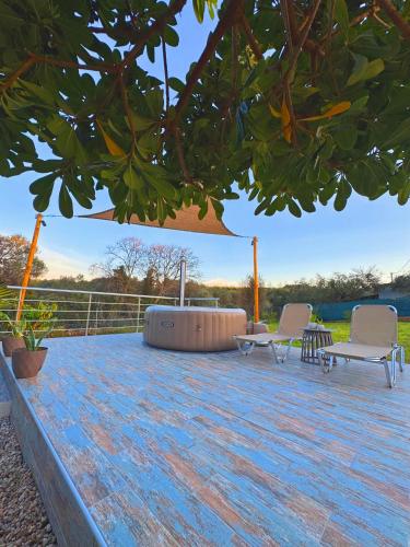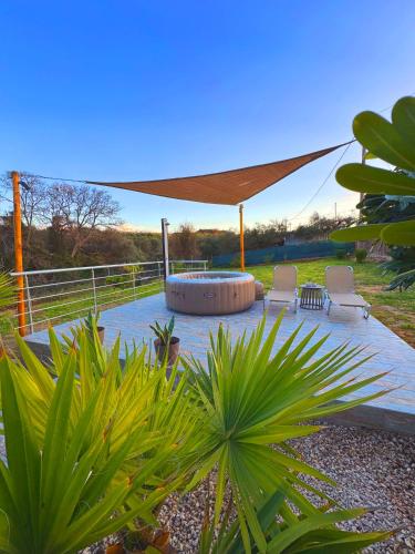 这家度假屋提供1间卧室、1间浴室、床上用品、毛巾、带有线频道的平板电视、设施齐全的厨房以及花园景露台。这家空调度假屋还配备休息区、洗衣机以及1间带浴缸或淋浴设施和热水浴池的浴室。