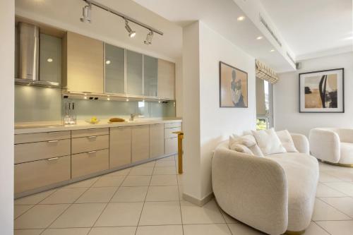 这家公寓配备2间卧室、2间浴室、床上用品、毛巾、电视、设施齐全的厨房以及海景阳台。这家公寓提供空调,也提供2间带淋浴设施和洗衣机的浴室。