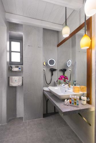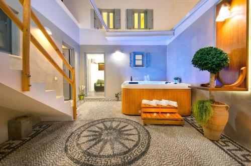 别墅拥有带横梁的天花板,采用灰色和白色的色调,配有精心挑选的家具,将现代和传统装饰成功地融为一体,提供两间独立的卧室、设备齐全的厨房、带沙发和40英寸智能电视的小型起居室、两间带独立淋浴间和水力按摩喷射浴缸的现代化浴室、珂诺诗(Korres)洗浴用品、Coco-Mat浴巾、浴袍、拖鞋、洗碗机、Pad air 2、两台DVD播放机以及洗衣机。