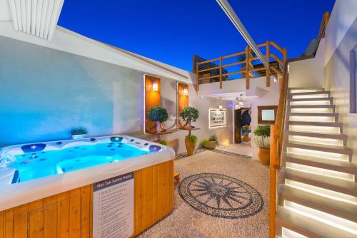 Lindos Shore Summer House with Jacuzzi and sea view !!!别墅距离林多斯卫城(Lindos Acropolis)有200米,拥有独特的装饰,提供带木制热水浴池和日光浴躺椅的鹅卵石庭院。复式别墅享的屋顶露台有爱琴海(Aegean Sea)的景致。各处均覆盖有免费WiFi。