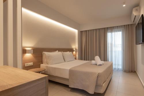 Mythos Suites Hotel配备餐厅、季节性室外泳池、花园和共用休息室,距离火烈鸟海滩(Flamingo Beach)有1分钟步行路程。住宿配备的免费WiFi,内部提供私人停车位。